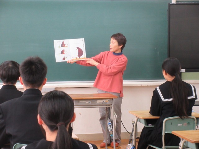 今回の絵本ですが、登場人物が「クマ」だけに、このご時世、子どもたちに恐怖感を与えないかと心配されていたボランティアさんですが、中学生なら大丈夫でしょう…ということで、この度の読み聞かせに取り上げてくださいました。