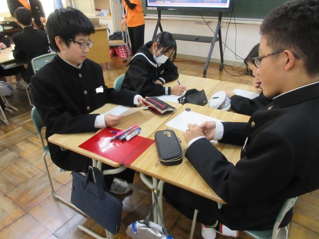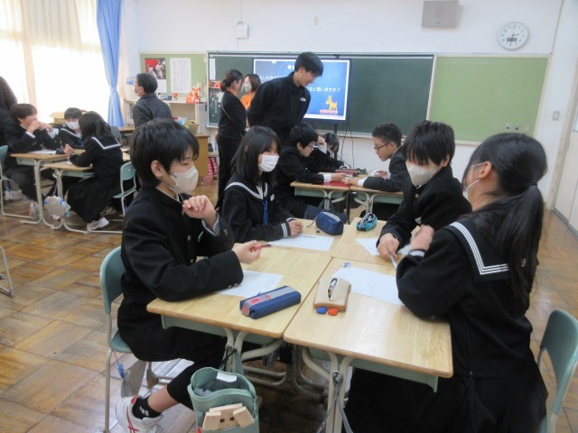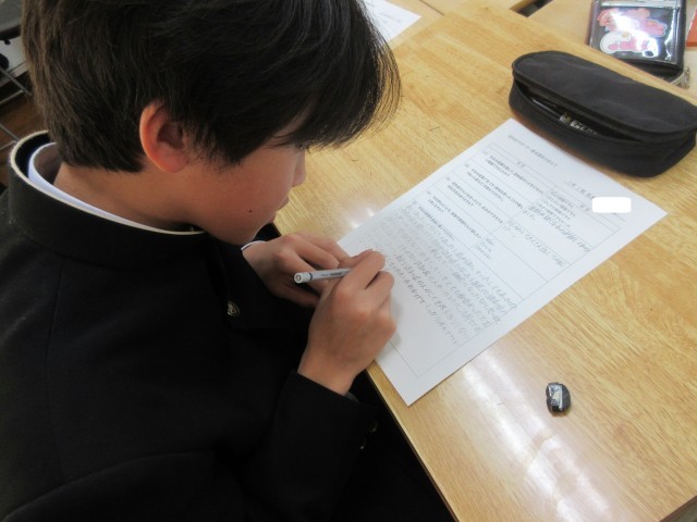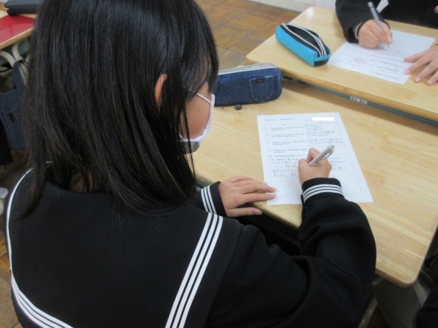 1年生は、最後に「自分が認知症だったら…どんな不安を感じるか」「もし身近な人が認知症だったら…どのように対応しようと思うか」といったことについて自分の考えをまとめ、今回の学びの振り返りとしました。小学4年時にも同講座の小学校バージョンを受講した1年生。認知症をより自分事として捉え、サポーターになるための意識を高めることにつながったのではないかと思います。