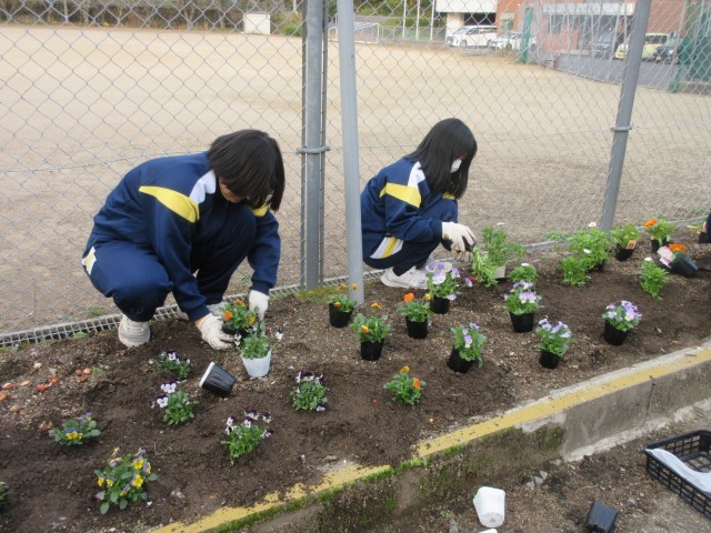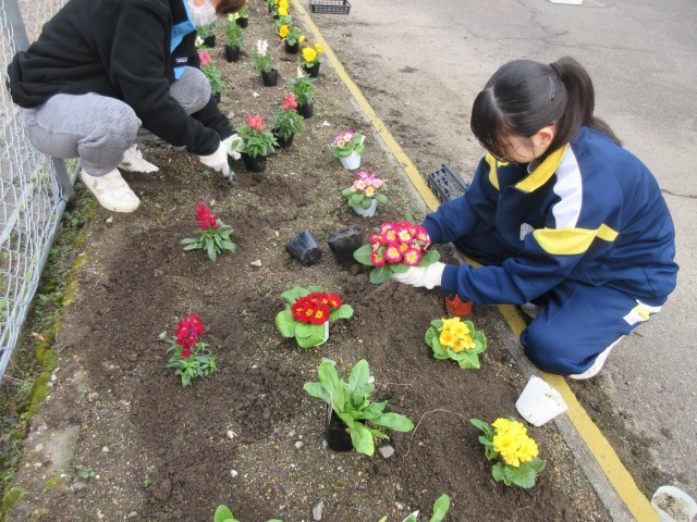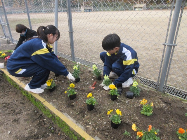 冬の花壇を彩る~美化委員による花の苗植え活動~