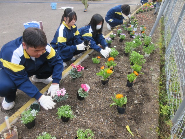 今回の美化委員会の活動のおかげで、寒さに強い花々によって生徒玄関前を明るく彩ることができました。寒々しくなりがちな冬の景観に活気を与えてくれた気がします。登校する生徒の皆さんにも、きっと大きなエネルギーを分け与えてくれるでしょう。