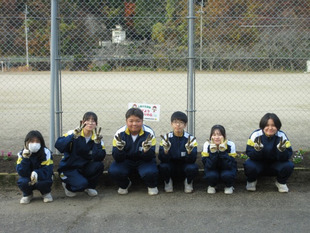 11月の活動で、同メンバーが枯れ始めていた生徒玄関前の花壇の花を全て取り除き、土壌整備を行いました。