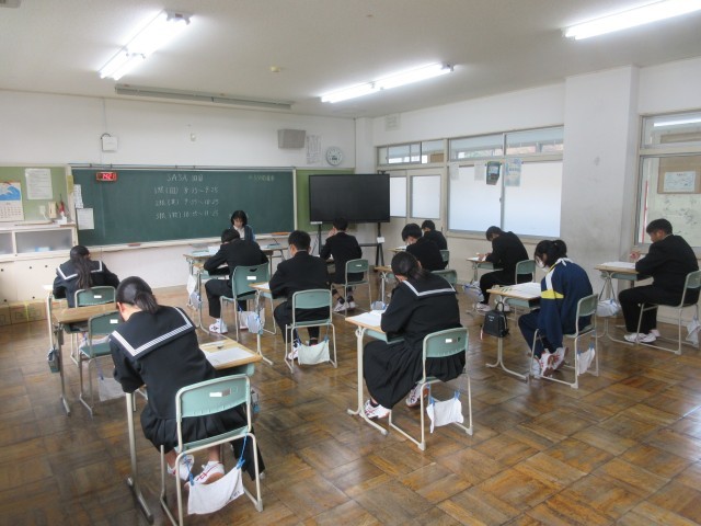 本日と明日の2日間をかけて、本校では「確認テスト」(1・3年)と「県学力調査」(2年)を実施します。