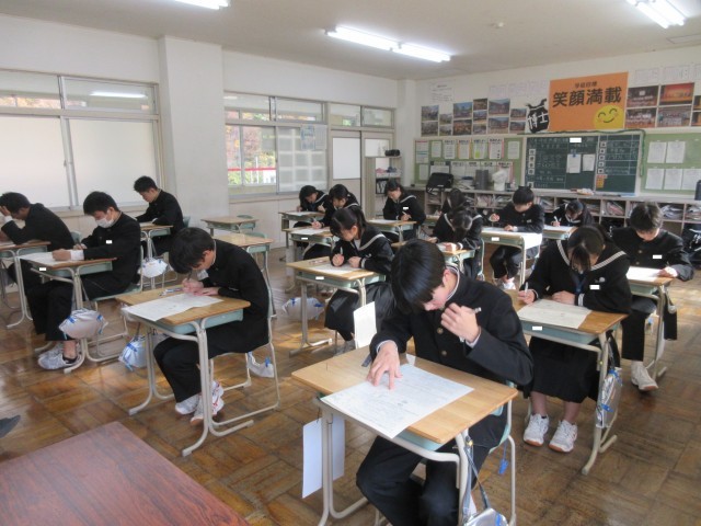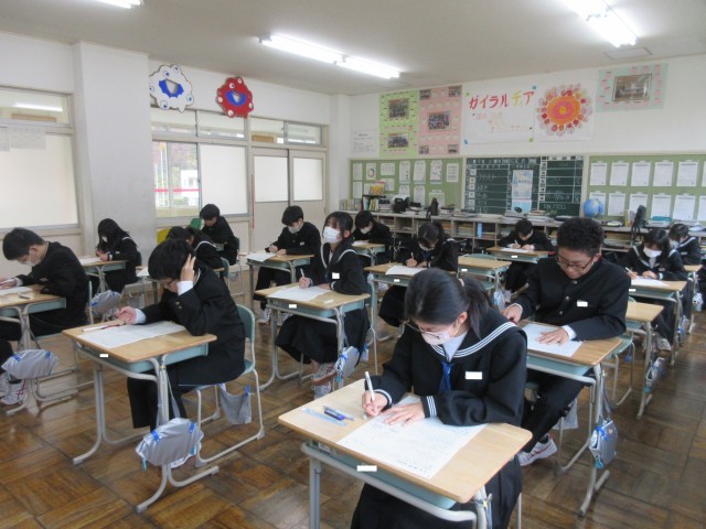 今日の朝は今年一番の冷え込みで、たいへん寒い一日のスタートとなりました。それに加えて、1年生は朝から背筋の凍るような(?)怪談話の読み聞かせ。その分、身も心も引き締めて1限目からのテスト(社会・理科)に向かうことができた…のではないでしょうか。