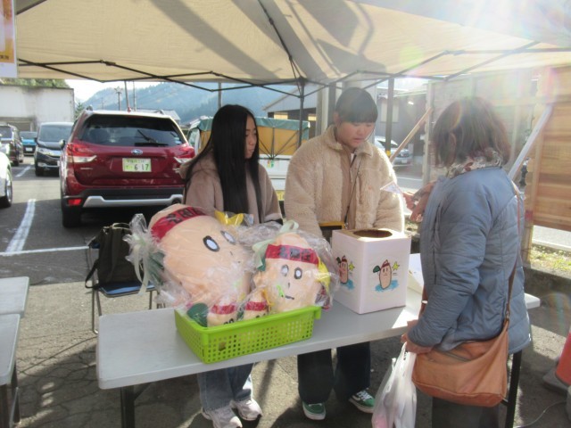 おかげさまで、午前11時頃までにはたくさんのお客さんがくじを引いてくれ、多くの方々に手作りグッズをプレゼントすることができました。中でも超力作の「じ~ちゃんドデカ人形」をラストワン賞として来客者にお渡しできたことで、大きな達成感を得ることができたものと思います。何より、粘りと香りが一級品と言われる地元が誇る「自然薯」に対する親しみ深い印象を、多くの人に与えることがことができたのではないでしょうか。