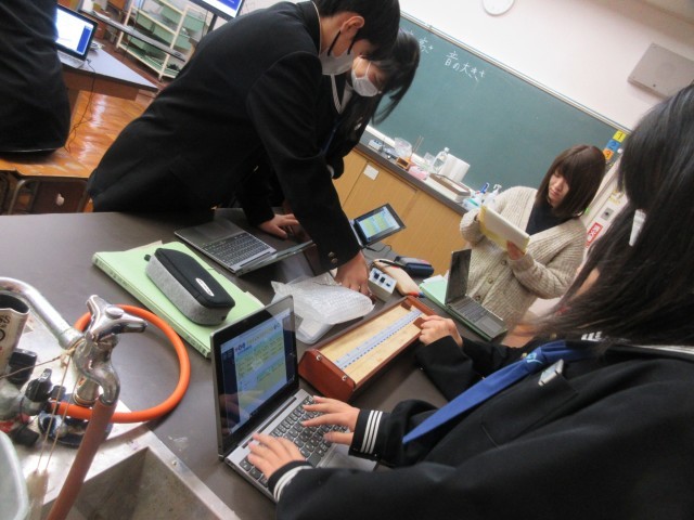 説明が終わるとさっそく班ごとに実験準備を整え、役割分担をしてから実験に移りました。素早い切り替えに意欲が感じられます。