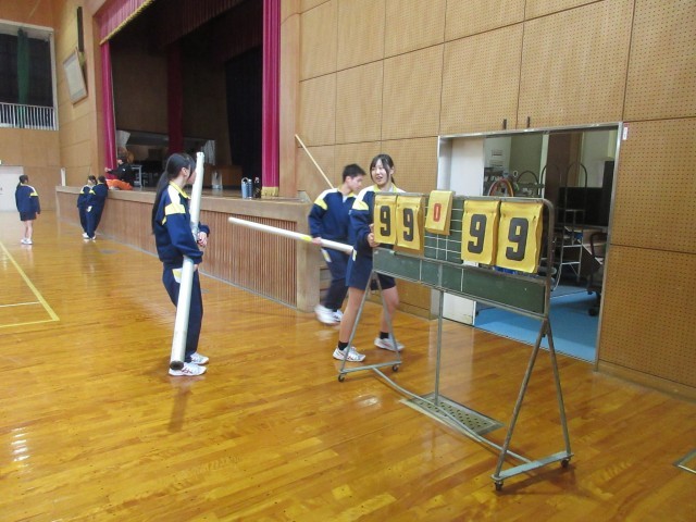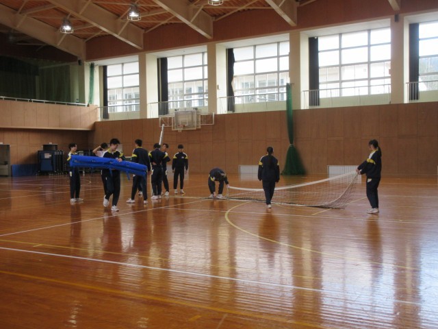 ところで、授業の最後には「さすが3年生」と思える姿が見られました。支柱・ネット・支柱カバー・得点板などを協力して片付け、器具庫まで運ぶ3年生。そのきびきびとした行動は、やはり「名中生のあこがれ」です。この調子で、2学期ラスト4日間を「願生って」もらいたいと思います。