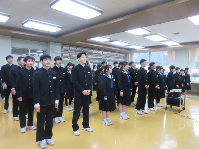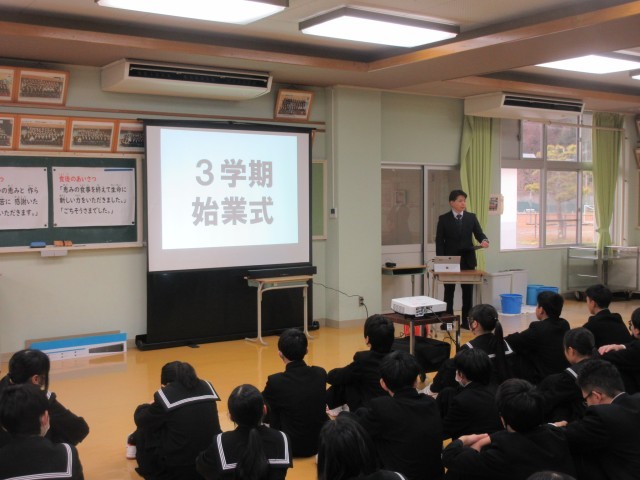 さて、節目の行事である3学期始業式ですが、今回も暖を取ることができる食堂にて実施しました。