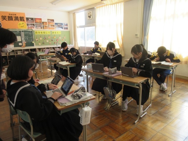 こうした3年生の学びに向かう姿勢を見ていると、「分かりたい」「できるようになりたい」という願いがひしひしと伝わってきます。明日からの学年末テストでは、持てる力をいかんなく発揮できるでしょう。入試に向けて、確かな自信と大きな弾みをつけられるよう願っています。
