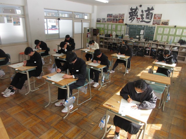 確認テストを終えた生徒数名に感想を聞いてみたところ…「難しかったけど、最後までがんばりました」。「テスト勉強が十分できなかったわりにはできたと思います」。「想像していた以上に難しかったけど、得意な国語はできたと思います」。「社会・理科がけっこうできたと思うけど、他の教科は…」。