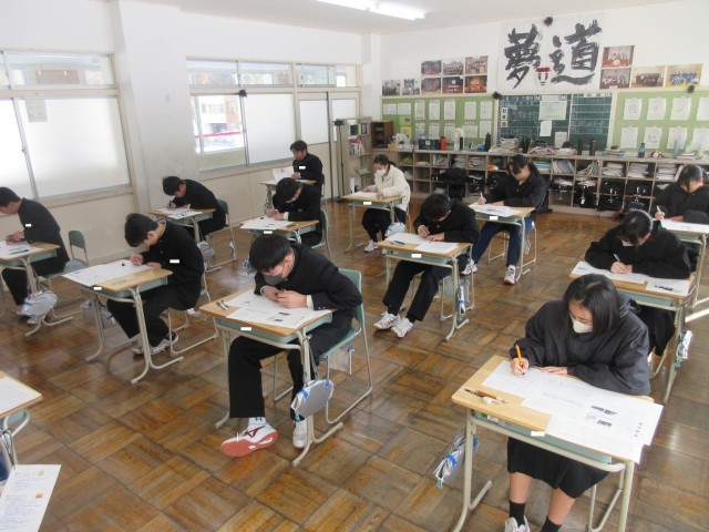 それでも1限目のテストが始まると、1・2年生ともにさらに集中力をアップさせて目の前の問題に取り組んでいました。そして50分間、見直しを含めて最後の最後までやり抜く生徒の皆さんの「粘り強さ」を見ることができました。