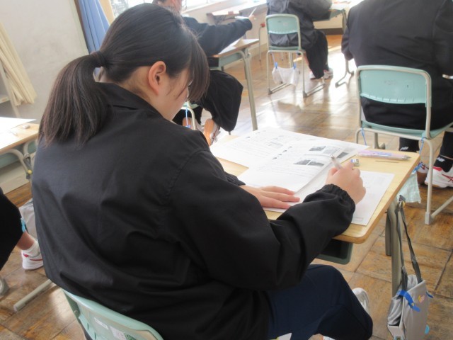 テスト後の休み時間になると、次の教科のテストに向けて教科書や学習ワークなどを開いて最後の確かめを行うなど、余念がありません。その光景を見て、少しでも高い点数を取りたい…という生徒の切実な思いを感じました。この姿勢こそ「確かな学力」の定着には欠かせないものと言えるでしょう。