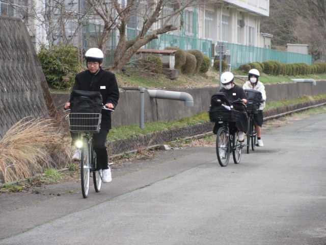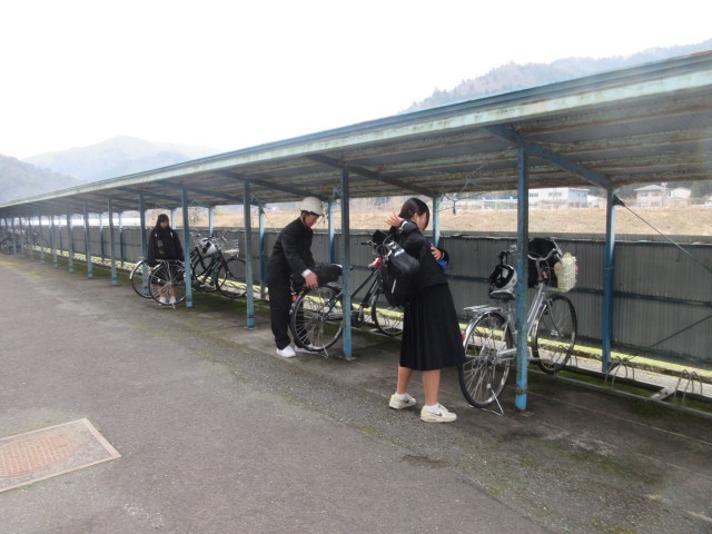 昨年10月からこの2月までの期間、本校ではスクールバスでの登下校としていましたが、本日より全校生徒自転車通学に切り替えました。