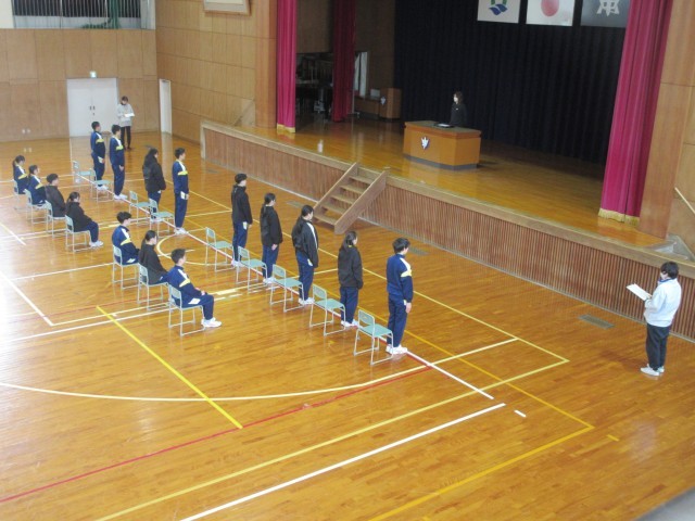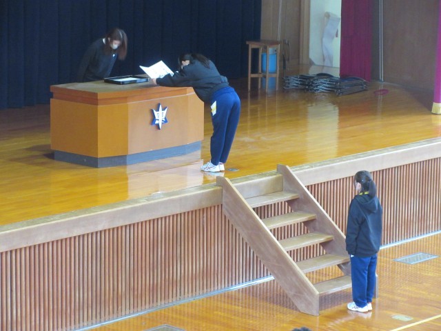 そのような中、3年生は卒業式の主役となるべく学年練習を実施。予定していた全校練習は中止としたため、自分たちが活躍する場面のみの練習に注力しました。ほどよい緊張感が漂う中、集中して取り組んでいるのもよく分かりました。今のところ3年生は体調を崩す生徒もいないので、当日は17名全員で卒業式を迎えられることを願っています。