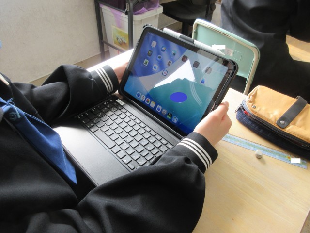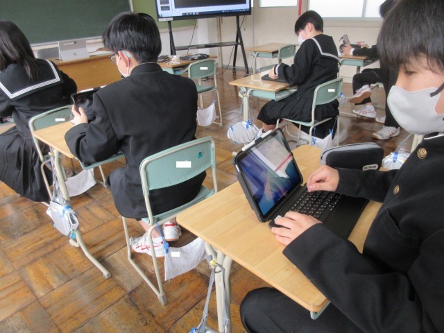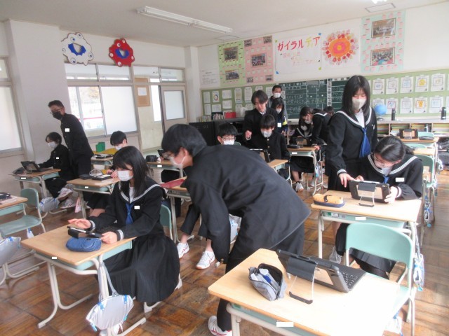一方、1年生には本日、新しくなった学習用タブレット端末を配付しました。タッチペンも各自1本ずつ準備されており、ずいぶんと使い勝手が良くなったようです。「キュビナ(AIドリル)がすごく答えやすくなりました!」という生徒の声も。学習意欲のますますの向上につながりそうです。これを機に、本校「タブレット端末活用ルール」の内容を再確認する時間をもちましたが、1年生は新品の端末を今後大切に使っていこうする気持ちを高めたようでした。さらに、動画視聴を通してSNSにまつわるトラブルや危険についても学び、「名中スマートルール」の意義をみんなで確かめ合いました。今日の1年生の目の輝きを見ていたら、新端末を有効・安全・大切に今後の学習に活用していくことでしょう。