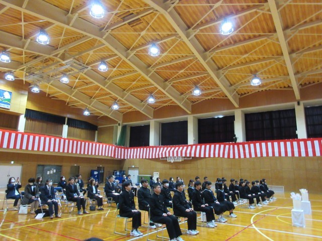 さて、今日の卒業式ですが、紅白幕に囲まれた会場に来賓の方々や保護者の皆さん、そして全校生徒が一同に会するとあって、やはり厳かな雰囲気が漂う中、緊張感をもって臨むことができました。主役の卒業生も、祝福する在校生も、練習や予行の時以上に真剣で、前向きで、一生懸命な姿がうかがえました。