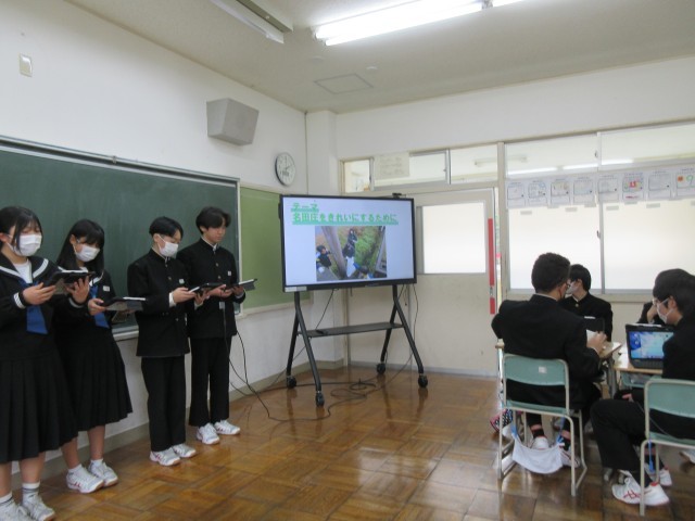 1年生の探究課題は、「ふるさとの特色」と「ふるさと名田庄の一員としてできること」の2つ。