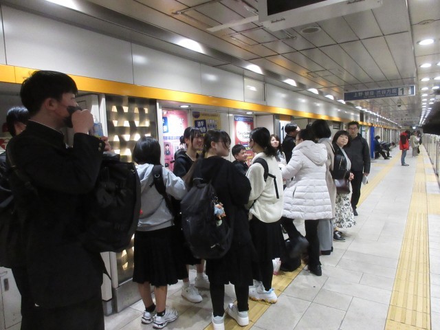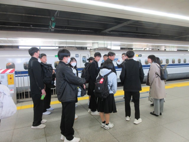 初日(3/11:水)は本校生徒玄関前で出発式を行った後、7:20にバスにてJR米原駅へと出発。その後、新幹線に乗って東京駅まで行きました。