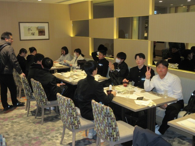 余韻に浸りながら会場を後にした2年生は、その後電車を乗り継いで夕食会場へと移動。浅草にあるホテルの高層階にてバイキング形式の食事をとりました。ゆったりとした雰囲気の中で、洋食・和食・中華にデザートと豊富な料理の中から好きな物を好きな分だけ皿に盛り、満足のいくまで味わった2年生。食後は、窓から見える都心の美しい夜景を堪能しました。すぐ目の前にあるスカイツリーや少し離れた所にある東京タワーなど名所を見ることができたのも、これまた良い思い出になったことでしょう。