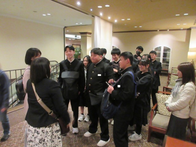 食事後は散歩がてらに近くの駅まで歩いて移動し、電車を乗り継いで宿泊先のホテルに到着しました。ホテルは最寄り駅にほぼ直結と立地条件はバッチリ。あまりの近さに2年生も「もう着いた?」「ここがホテル?」と少し困惑気味…。しかしチェックイン後、3階の各部屋に入った2年生は広くてきれいな室内をて大喜び。早朝出発・長距離移動・慣れない電車の乗り継ぎなどの疲れも一気に吹き飛んだようでした。