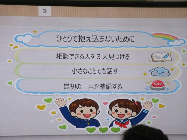 まずは「正しい情報・知識を得ること」。自分の思い込みが自分自身を追い詰め、我慢し続けることになってしまうおそれがあることを指摘いただきました。うわさやSNS情報はもちろんのこと、大人が言ったことでも「信用・信頼しつつ本当かどうか確かめる(確認・検証する)」習慣を身につけることの大切さ学びました。
