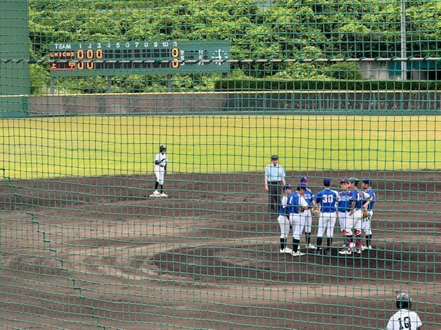 続いて本日の大会3日目には、小浜市営球場にて軟式野球競技が行われました。小浜中・小浜二中・上中中・高浜中・UNIONS(ユニオンズ)の5チームによるトーナメント戦。本校野球部員については、「UNIONS(ユニオンズ)」に所属する選手が試合に臨みました。対戦チームは5月の試合で惜しくも敗れた上中中。今回も一進一退の攻防が続く緊迫したゲーム展開となりましたが、数少ないチャンスをものにした上中中に1-3で惜敗し、初戦敗退となりました。